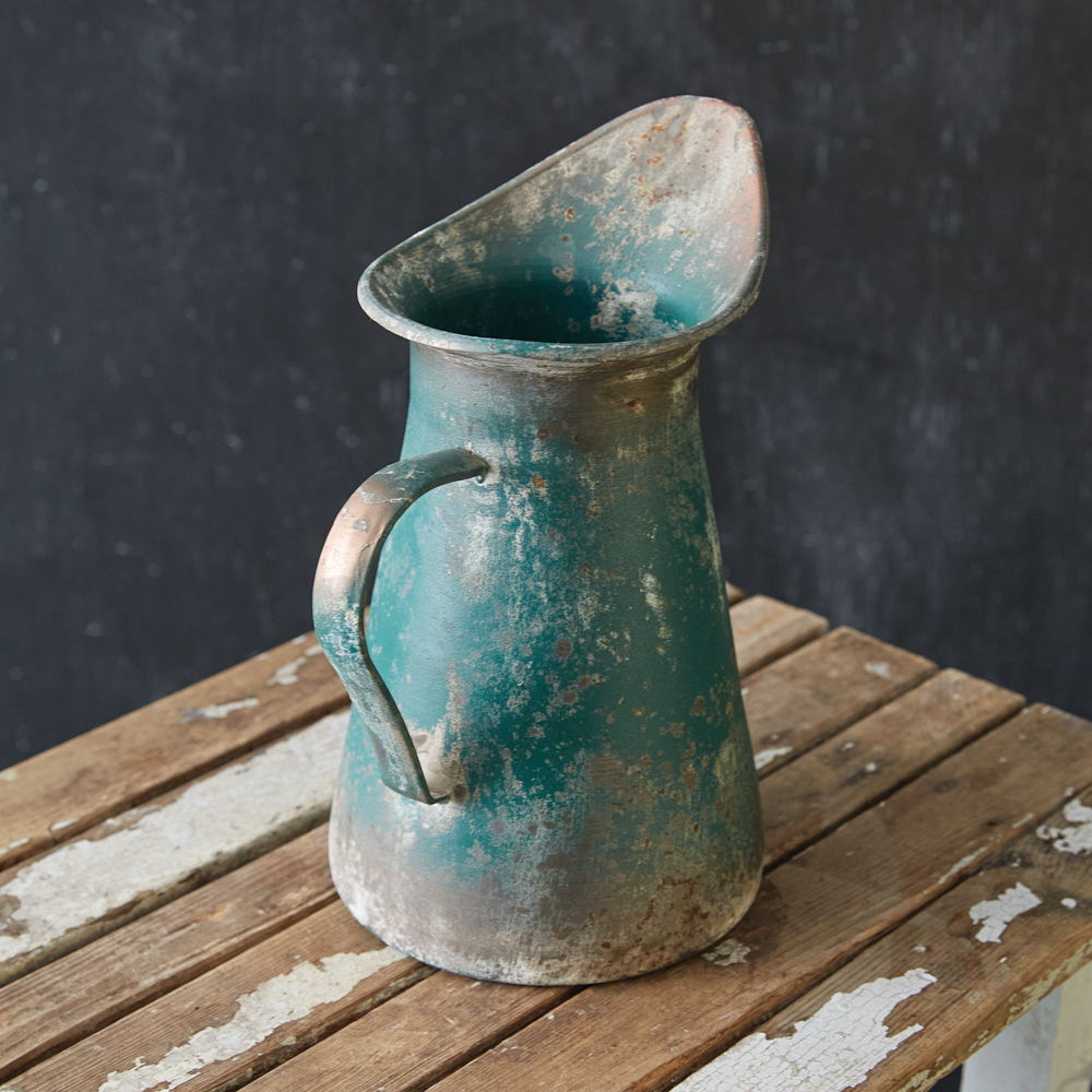 Introducing our Garden Luster Collection - Captivating the embodiment of artistry and history, this antique-inspired relic transcends time with its exquisite lustrous design. This pitcher is crafted from metal. Not guaranteed watertight.